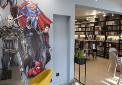 Areteka, розташована на Rajskiej 12 — це унікальний простір, який важко описати одним словом. Це трохи бібліотека, трохи творчий хаб: тут можна взяти книгу або цифровий рідер, попрацювати за столом, а можна розслабитися і пограти на PlayStation.