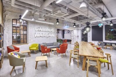 Google Campus Warsaw — це сучасний хаб для стартапів і креативних людей, розташований в історичній частині Centrum Praskiego Koneser. Тут поєднані старовинна архітектура з сучасними робочими просторами та технологіями. У цьому просторі є кімнати для воркшопів, лекцій і подій, простір для створення відео та подкастів, а також кафе, де можна працювати або зустрічатися з однодумцями.